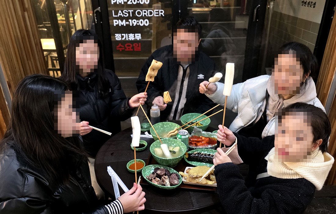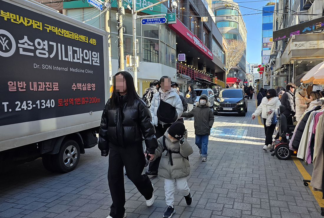 아이들도 너무 좋아했어요 엄마 손 잡고 할머니 손 잡고 잘 따라 다니며 먹거리 살펴 보는중 입니다